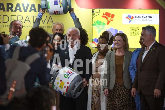 2857889 Presidente Lula segurando botijão de Gás, na Caravana Federativa, no Expominas em Belo Horizonte, uma iniciativa do Governo Federal que busca aproximar a União de estados e municípios e gestores públicos e representantes de órgãos federais.