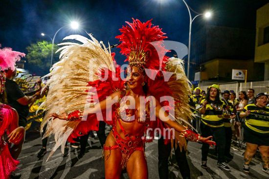 2889067 Depois de 13 anos foi retomado o desfiles de escolas de samba da cidade , 5 escolas devem desfilar na avenida principal da cidade em carater demonstrativo não competitivo . Atraiu uma grande multidão ao centro da cidade .