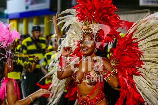 2888975 Depois de 13 anos foi retomado o desfiles de escolas de samba da cidade , 5 escolas devem desfilar na avenida principal da cidade em carater demonstrativo não competitivo . Atraiu uma grande multidão ao centro da cidade .