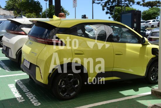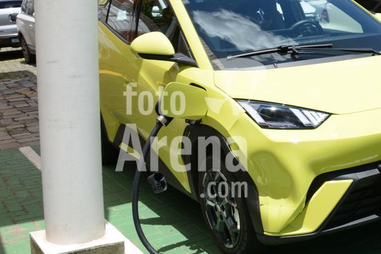 Imagens de carro elétrico em um ponto de recarregamento de baterias, instalado no pátio da Universidade de Caxias do Sul, com capacidade para 3 carros simultaneamente, operado por empresa particular, mediante pagamento, conforme instruções contidas no totem de abastecimento. Caxias do Sul, RS (27).