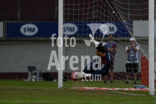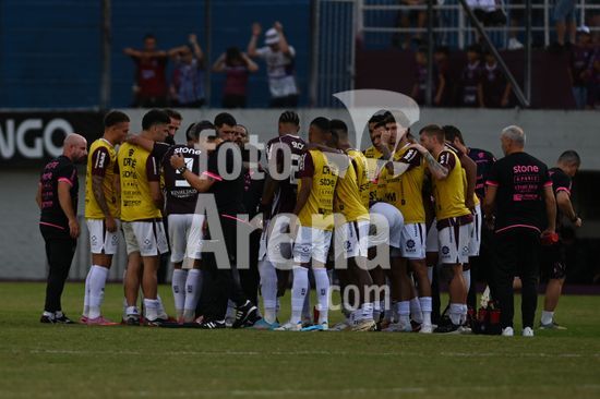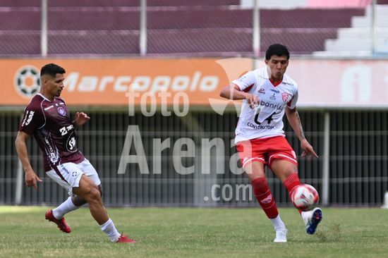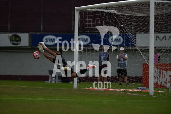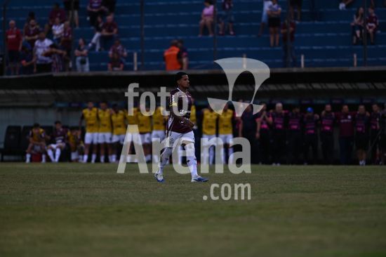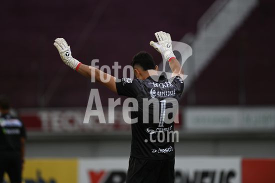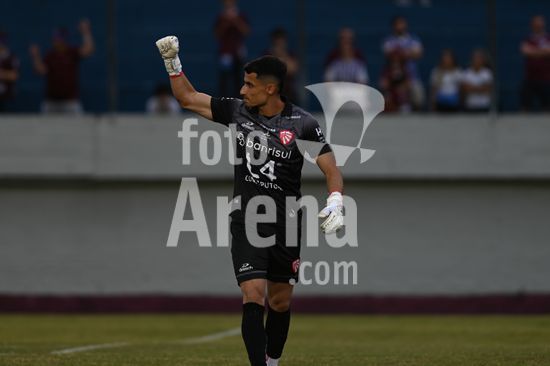 Imagens da partida de futebol entre o Caxias e o São Luíz, na partida de volta da semifinal da Taça Farroupilha. A equipe grená enfrentará o São Luiz, às 16h, no Estádio Centenário. Técnico do São Luiz, Paulo Henrique Marques, atravessando o campo após a vitória do São Luiz, com a irrogação acionada. Caxias do Sul, RS (21).