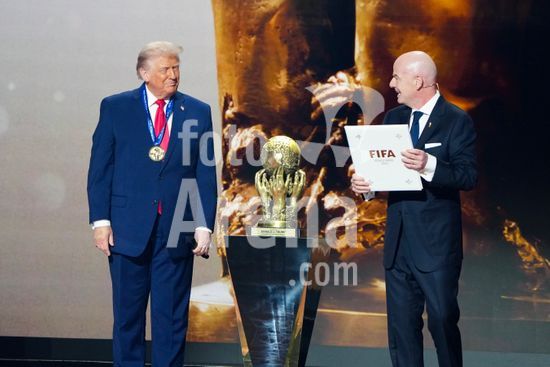 ny051225150711 President Donald Trump accepts the first FIFA Peace Prize from Gianni Infantino, right, the president of FIFA, during the draw for the 2026 FIFA World Cup, at the Kennedy Center in Washington on Friday, Dec. 5, 2025. (Tierney L. Cross/The New York Times/Fotoarena)
