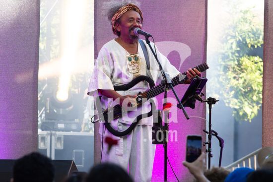 2931871 Apresentação do cantor e compositor brasileiro, Chico Cesar, que aconteceu neste sábado (25), feriado de 25 de Abril, no Palácio Baldaya, na freguesia de Benfica, Lisboa, Portugal. O 25 de Abril celebra a Revolução dos Cravos (1974), um golpe militar pacífico que derrubou a ditadura do Estado Novo. O movimento restaurou a democracia, a liberdade de expressão e iniciou a descolonização. É o Dia da Liberdade, simbolizado pelos cravos vermelhos colocados nos canos das espingardas.