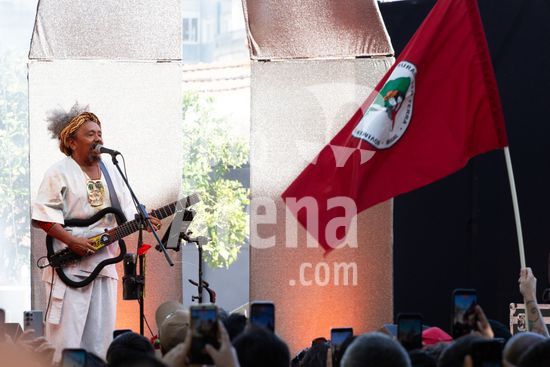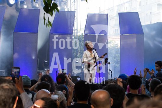 2931872 Apresentação do cantor e compositor brasileiro, Chico Cesar, que aconteceu neste sábado (25), feriado de 25 de Abril, no Palácio Baldaya, na freguesia de Benfica, Lisboa, Portugal. O 25 de Abril celebra a Revolução dos Cravos (1974), um golpe militar pacífico que derrubou a ditadura do Estado Novo. O movimento restaurou a democracia, a liberdade de expressão e iniciou a descolonização. É o Dia da Liberdade, simbolizado pelos cravos vermelhos colocados nos canos das espingardas.