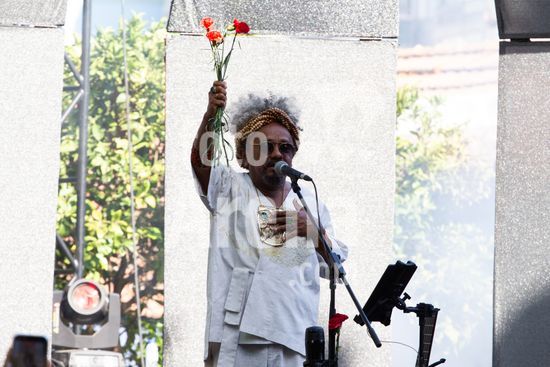 2931873 Apresentação do cantor e compositor brasileiro, Chico Cesar, que aconteceu neste sábado (25), feriado de 25 de Abril, no Palácio Baldaya, na freguesia de Benfica, Lisboa, Portugal. O 25 de Abril celebra a Revolução dos Cravos (1974), um golpe militar pacífico que derrubou a ditadura do Estado Novo. O movimento restaurou a democracia, a liberdade de expressão e iniciou a descolonização. É o Dia da Liberdade, simbolizado pelos cravos vermelhos colocados nos canos das espingardas.