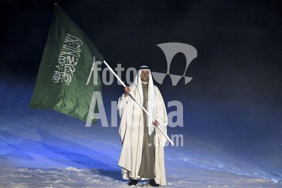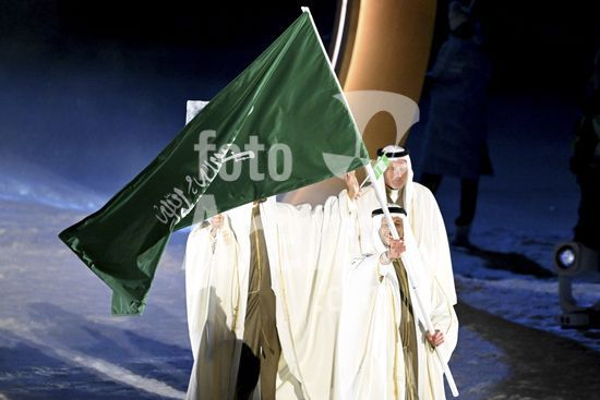 2880146 Predazzo, Italia, 6 de fevereiro de 2026. A equipe da Arabia Saudita entra na cerimonia de abertura dos Jogos Olimpicos de Inverno de 2026 em Predazzo, Italia. (Foto de Igor Kupljenik/Sports Press Photo) (Igor Kupljenik / SPP)