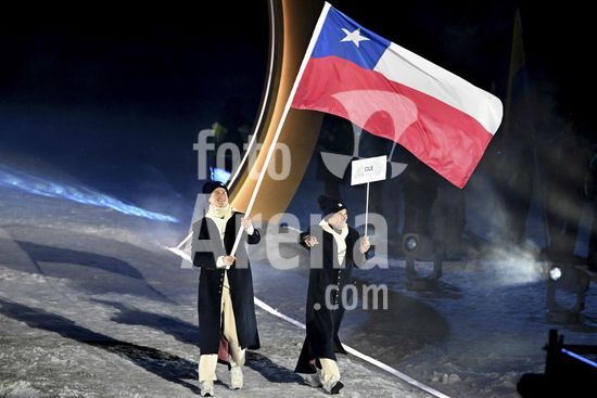 2880151 Predazzo, Italia, 6 de fevereiro de 2026. O Chile entra na cerimonia de abertura dos Jogos Olimpicos de Inverno de 2026 em Predazzo, Italia. (Foto de Igor Kupljenik/Sports Press Photo) (Igor Kupljenik / SPP)