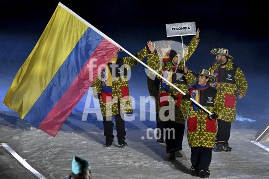 2880154 Predazzo, Italia, 6 de fevereiro de 2026. A Colombia entra na cerimonia de abertura dos Jogos Olimpicos de Inverno de 2026 em Predazzo, Italia. (Foto de Igor Kupljenik/Sports Press Photo) (Igor Kupljenik / SPP)