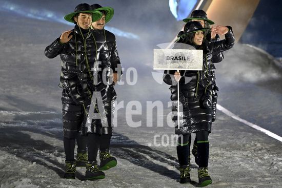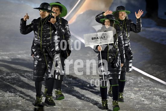 2880160 Predazzo, Italia, 6 de fevereiro de 2026. A equipe brasileira entra na cerimonia de abertura dos Jogos Olimpicos de Inverno de 2026 em Predazzo, Italia. (Foto de Igor Kupljenik/Sports Press Photo) (Igor Kupljenik / SPP)