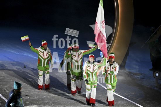 2880166 Predazzo, Italia, 6 de fevereiro de 2026. O Ira entra na cerimonia de abertura dos Jogos Olimpicos de Inverno de 2026 em Predazzo, Italia. (Foto de Igor Kupljenik/Sports Press Photo) (Igor Kupljenik / SPP)
