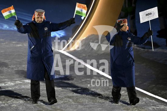 2880167 Predazzo, Italia, 6 de fevereiro de 2026. A India entra na cerimonia de abertura dos Jogos Olimpicos de Inverno de 2026 em Predazzo, Italia. (Foto de Igor Kupljenik/Sports Press Photo) (Igor Kupljenik / SPP)