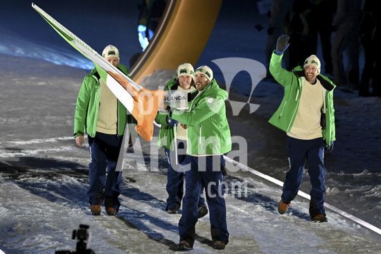2880168 Predazzo, Italia, 6 de fevereiro de 2026. A Irlanda entra na cerimonia de abertura dos Jogos Olimpicos de Inverno de 2026 em Predazzo, Italia. (Foto de Igor Kupljenik/Sports Press Photo) (Igor Kupljenik / SPP)