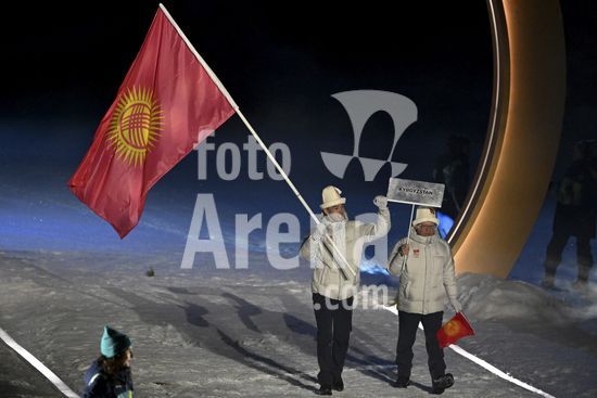 2880178 Predazzo, Italia, 6 de fevereiro de 2026. O Quirguistao participa da cerimonia de abertura dos Jogos Olimpicos de Inverno de 2026 em Predazzo, Italia. (Foto de Igor Kupljenik/Sports Press Photo) (Igor Kupljenik / SPP)