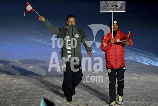 2880180 Predazzo, Italia, 6 de fevereiro de 2026. O Libano entra na cerimonia de abertura dos Jogos Olimpicos de Inverno de 2026 em Predazzo, Italia. (Foto de Igor Kupljenik/Sports Press Photo) (Igor Kupljenik / SPP)