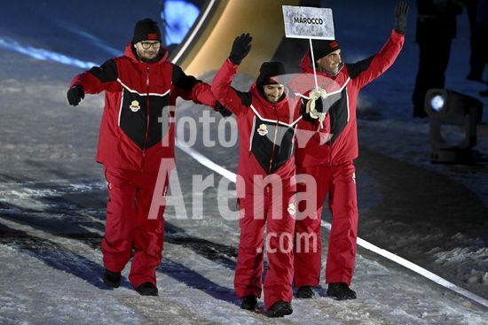 2880181 Predazzo, Italia, 6 de fevereiro de 2026. Marrocos entra na cerimonia de abertura dos Jogos Olimpicos de Inverno de 2026 em Predazzo, Italia. (Foto de Igor Kupljenik/Sports Press Photo) (Igor Kupljenik / SPP)