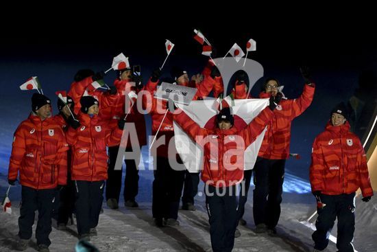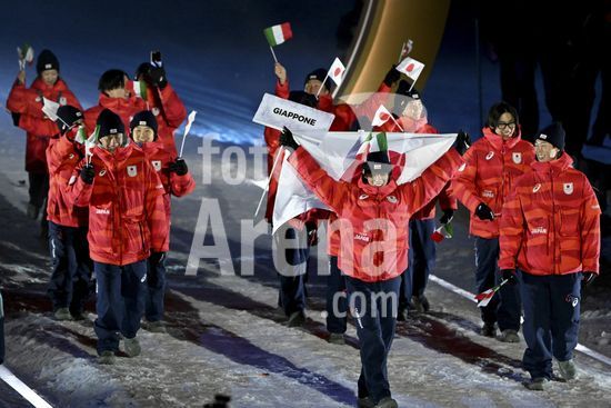 2880215 Predazzo, Italia, 6 de fevereiro de 2026. O Japao entra na cerimonia de abertura dos Jogos Olimpicos de Inverno de 2026 em Predazzo, Italia. (Foto de Igor Kupljenik/Sports Press Photo) (Igor Kupljenik / SPP)