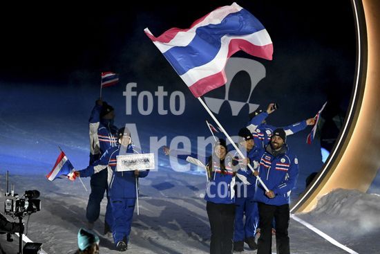 2880190 Predazzo, Italia, 6 de fevereiro de 2026. A Tailandia entra na cerimonia de abertura dos Jogos Olimpicos de Inverno de 2026 em Predazzo, Italia. (Foto de Igor Kupljenik/Sports Press Photo) (Igor Kupljenik / SPP)