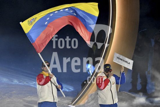 2880192 Predazzo, Italia, 6 de fevereiro de 2026. A Venezuela entra na cerimonia de abertura dos Jogos Olimpicos de Inverno de 2026 em Predazzo, Italia. (Foto de Igor Kupljenik/Sports Press Photo) (Igor Kupljenik / SPP)