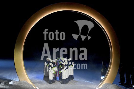 2880187 Predazzo, Italia, 6 de fevereiro de 2026. A Eslovenia entra na cerimonia de abertura dos Jogos Olimpicos de Inverno de 2026 em Predazzo, Italia. (Foto de Igor Kupljenik/Sports Press Photo) (Igor Kupljenik / SPP)