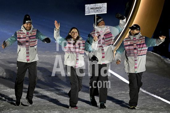 2880210 Predazzo, Italia, 6 de fevereiro de 2026. O Mexico entra na cerimonia de abertura dos Jogos Olimpicos de Inverno de 2026 em Predazzo, Italia. (Foto de Igor Kupljenik/Sports Press Photo) (Igor Kupljenik / SPP)