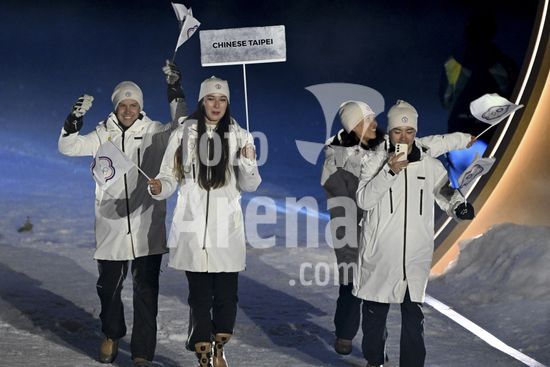 2880223 Predazzo, Italia, 6 de fevereiro de 2026. A equipe de Taipei Chines entra na cerimonia de abertura dos Jogos Olimpicos de Inverno de 2026 em Predazzo, Italia. (Foto de Igor Kupljenik/Sports Press Photo) (Igor Kupljenik / SPP)