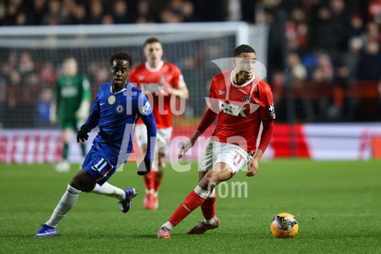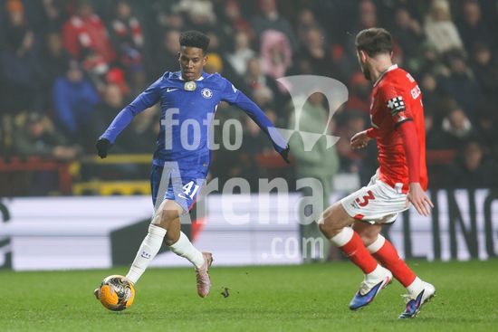 2867175 Josh-Kofi Acheampong, do Chelsea, sofre pressao de James Bree, do Charlton Athletic, durante a partida da FA Cup entre Charlton Athletic e Chelsea no The Valley, em Londres, Inglaterra (Foto de Alexander Canillas/Sports Press Photo).