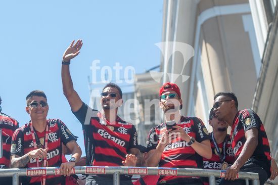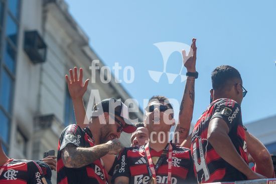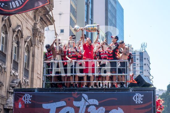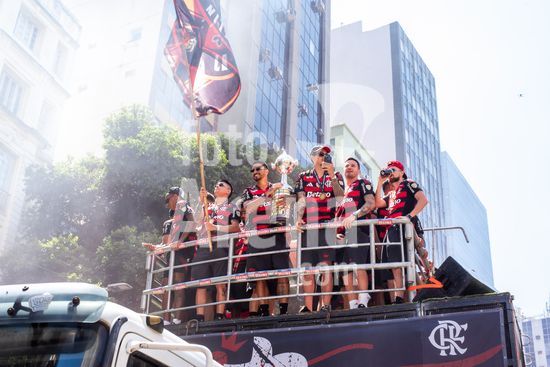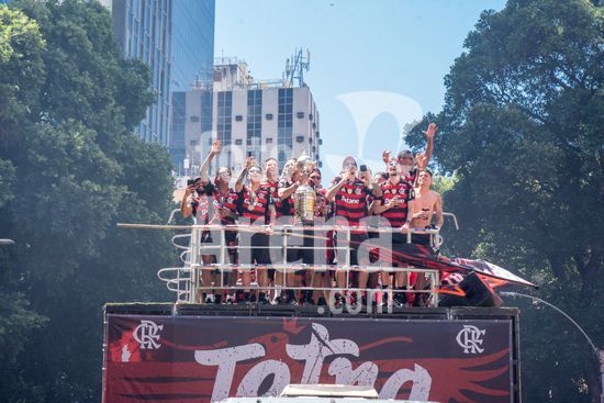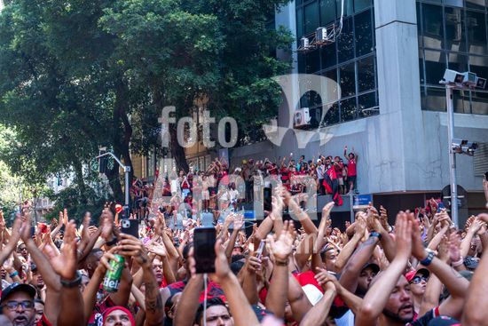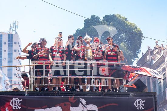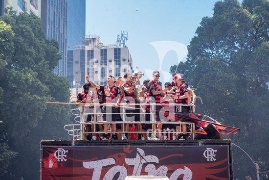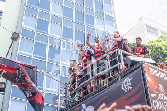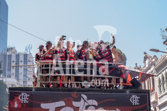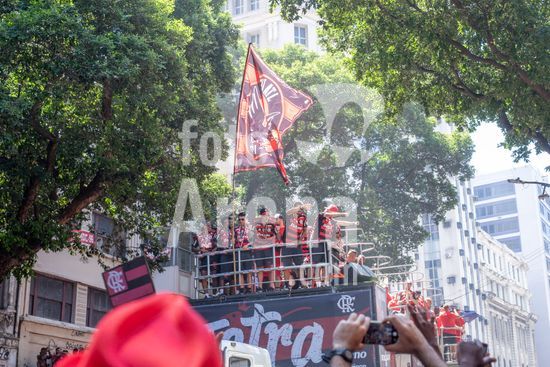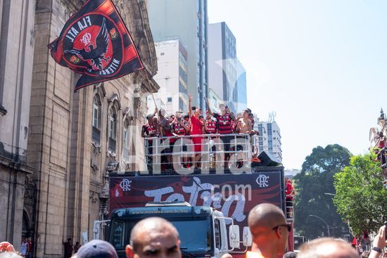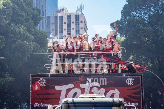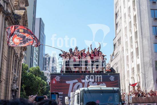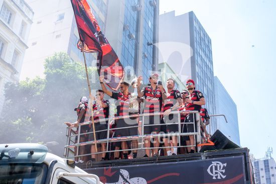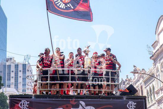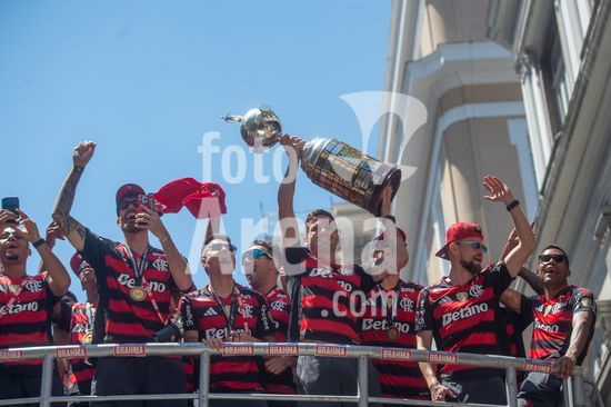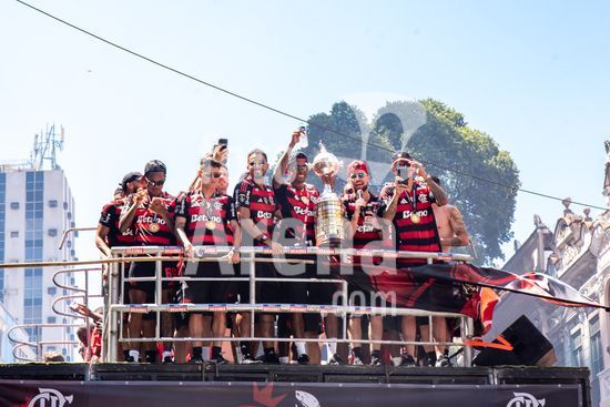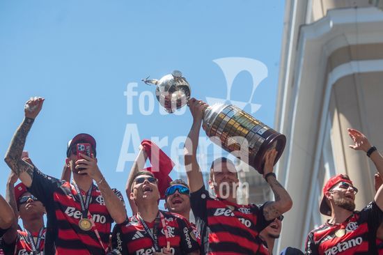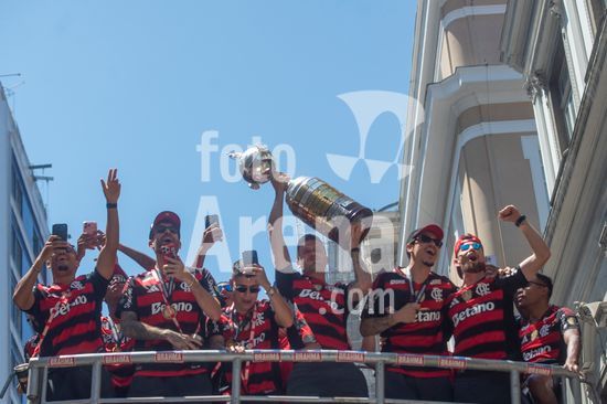 Em trio elétrico, Flamengo faz festa no Centro do Rio para comemorar tetra da Libertadores. Os jogadores do Flamengo e seus torcedores estão em festa. Neste domingo (30), eles se encontraram no Centro, no Rio de Janeiro, para celebrar a conquista o tetracampeonato da Conmebol Libertadores, conquistado no último sábado ao vencer o Palmeiras por 1 a 0, em Lima, no Peru.