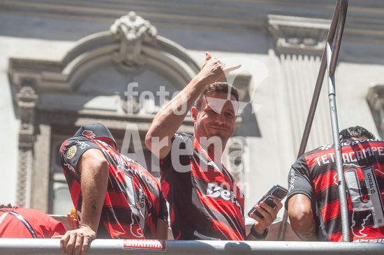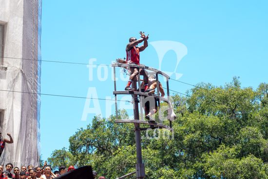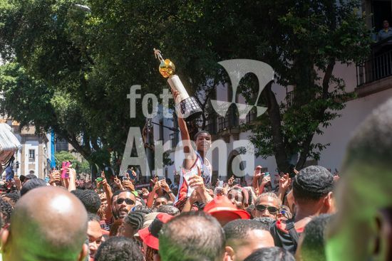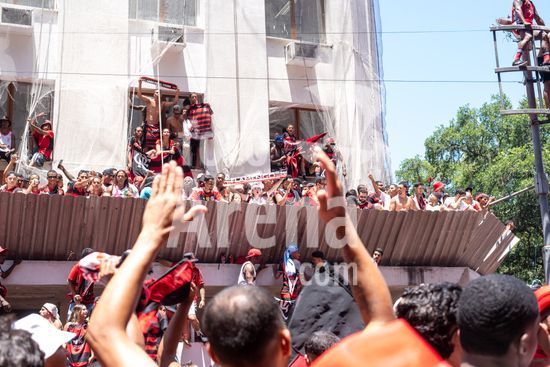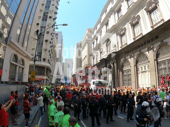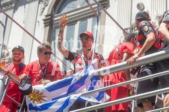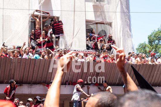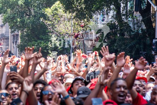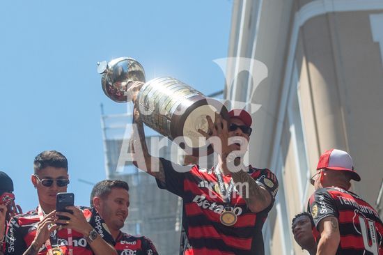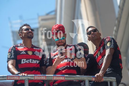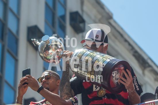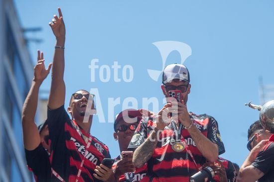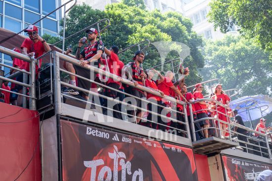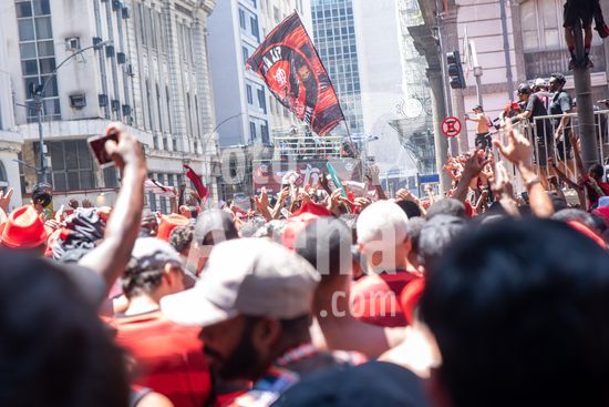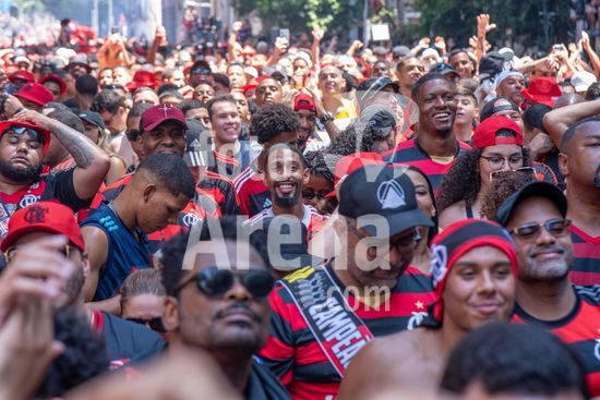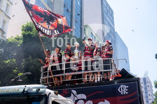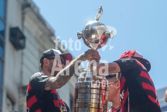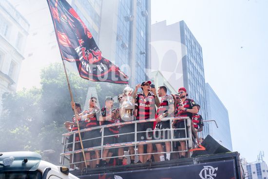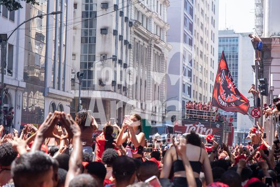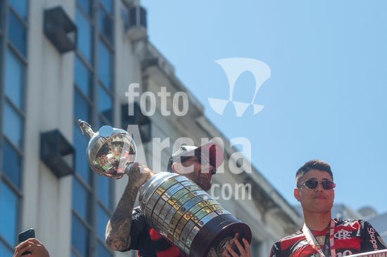 Em trio elétrico, Flamengo faz festa no Centro do Rio para comemorar tetra da Libertadores. Os jogadores do Flamengo e seus torcedores estão em festa. Neste domingo (30), eles se encontraram no Centro, no Rio de Janeiro, para celebrar a conquista o tetracampeonato da Conmebol Libertadores, conquistado no último sábado ao vencer o Palmeiras por 1 a 0, em Lima, no Peru.
