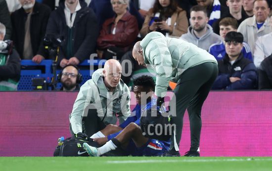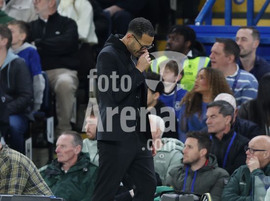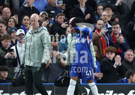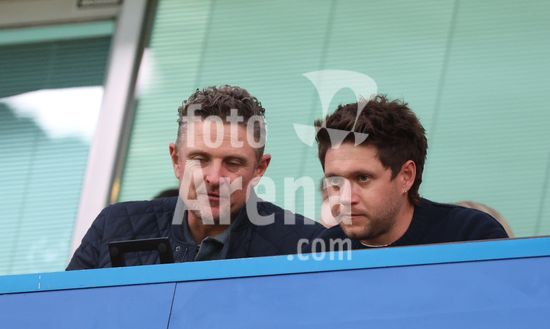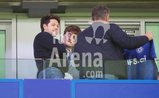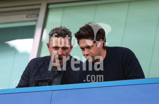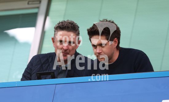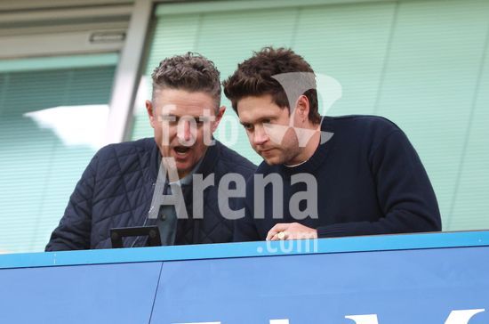 LONDRES, INGLATERRA, 18 DE ABRIL: O golfista Justin Rose e o cantor Niall Horan assistem a partida entre Chelsea FC e Manchester United FC, valida pela Premier League, no Estadio Stamford Bridge, em Londres, Inglaterra, em 18 de abril, das arquibancadas. (Foto de Daniel Weir) (Daniel Weir/Sports Press Photo / SPP)
