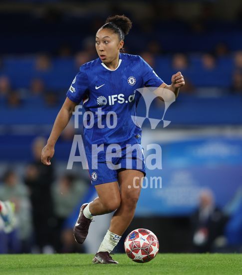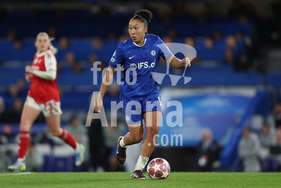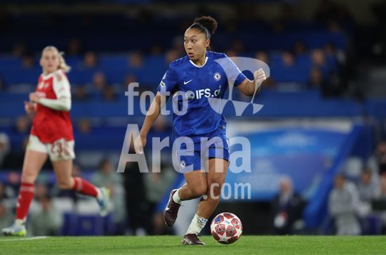 2917022 LONDRES, INGLATERRA - 1 DE ABRIL: Sandy Baltimore, do Chelsea, com a bola durante a partida de volta das quartas de final da Liga dos Campeoes Feminina da UEFA 2025/26 entre Chelsea e Arsenal, no Stamford Bridge, em 1 de abril de 2026, em Londres, Inglaterra. (Jay Patel/SPP)