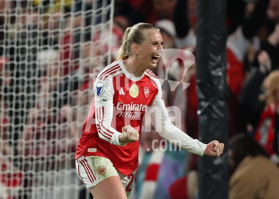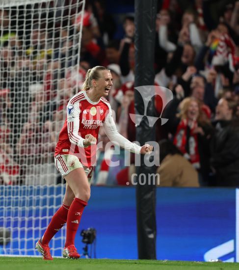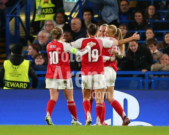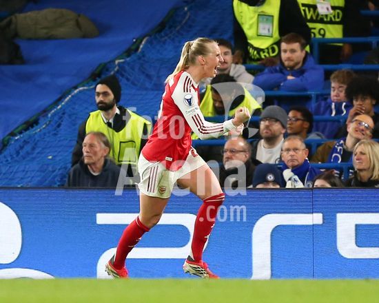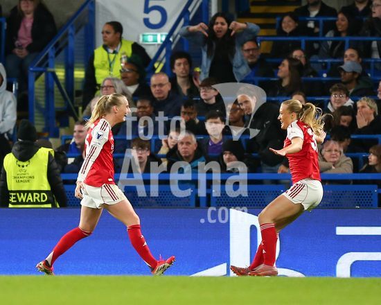 2916906 LONDRES, INGLATERRA, 1 DE ABRIL: Stina Blackstenius, do Arsenal Women, comemora durante a partida entre Chelsea Women FC e Arsenal Women FC pela Liga dos Campeoes Feminina da UEFA, no Estadio Stamford Bridge, em Londres, Inglaterra, em 1º de abril. (Foto de Daniel Weir) (Daniel Weir/Sports Press Photo / SPP)