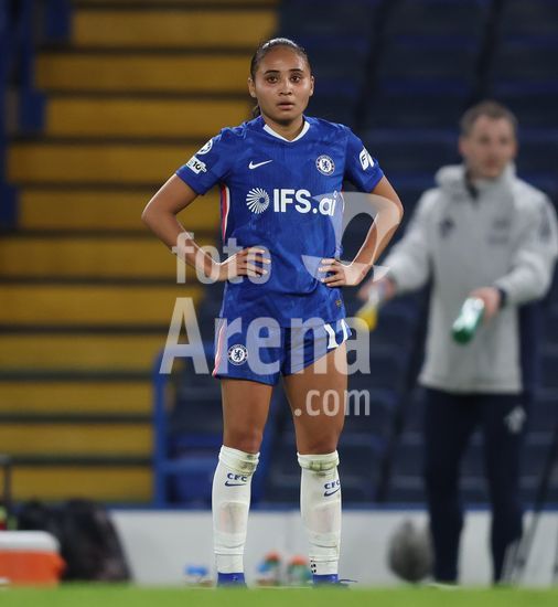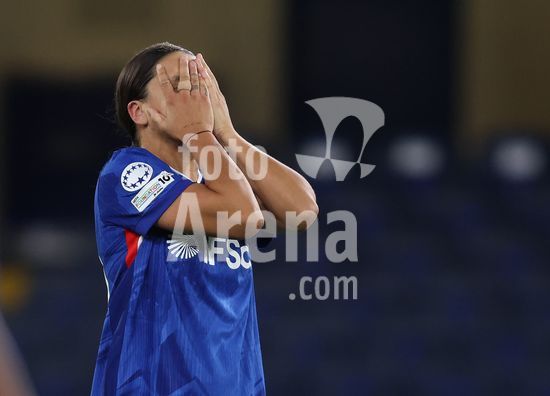 2916907 LONDRES, INGLATERRA, 1 DE ABRIL: Sandy Baltimore, do Chelsea Women, demonstra decepcao e desanimo durante a partida entre Chelsea Women FC e Arsenal Women FC, valida pela Liga dos Campeoes Feminina da UEFA, no Estadio Stamford Bridge, em Londres, Inglaterra, no dia 1 de abril. (Foto de Daniel Weir) (Daniel Weir/Sports Press Photo / SPP)