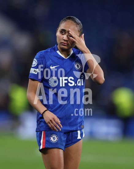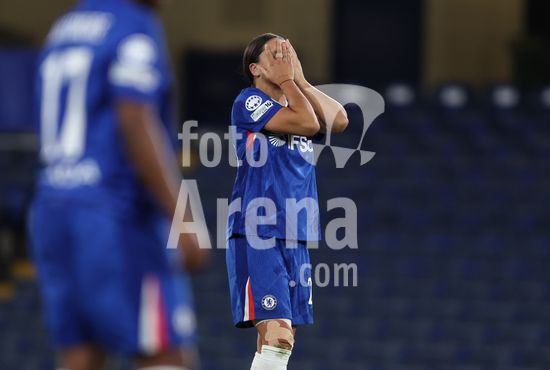2916922 LONDRES, INGLATERRA, 1 DE ABRIL: Sandy Baltimore, do Chelsea Women, demonstra decepcao e desanimo apos a eliminacao da equipe na partida entre Chelsea Women FC e Arsenal Women FC, valida pela Liga dos Campeoes Feminina da UEFA, disputada no Estadio Stamford Bridge, em Londres, Inglaterra, no dia 1 de abril. (Foto de Daniel Weir) (Daniel Weir/Sports Press Photo / SPP)