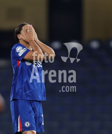 2916740 LONDRES, INGLATERRA - 1 DE ABRIL: Lucy Bronze, do Chelsea, com as maos na cabeca apos uma oportunidade perdida durante o jogo de volta das quartas de final da Liga dos Campeoes Feminina da UEFA 2025/26 entre Chelsea e Arsenal, no Stamford Bridge, em 1 de abril de 2026, em Londres, Inglaterra. (Jay Patel/SPP)