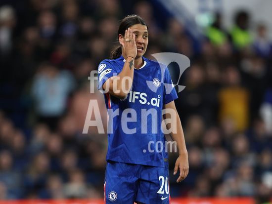 2916908 LONDRES, INGLATERRA, 1 DE ABRIL: Sam Kerr, do Chelsea Women, demonstra decepcao e desanimo durante a partida entre Chelsea Women FC e Arsenal Women FC, valida pela Liga dos Campeoes Feminina da UEFA, no Estadio Stamford Bridge, em Londres, Inglaterra, no dia 1 de abril. (Foto de Daniel Weir) (Daniel Weir/Sports Press Photo / SPP)