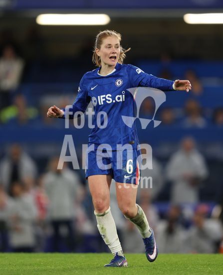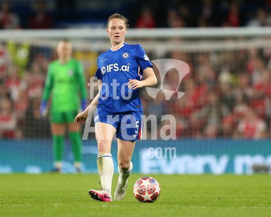 2917005 LONDRES, INGLATERRA - 1 DE ABRIL: Veerle Buurman, do Chelsea, com a bola durante a partida de volta das quartas de final da Liga dos Campeoes Feminina da UEFA 2025/26 entre Chelsea e Arsenal, no Stamford Bridge, em 1 de abril de 2026, em Londres, Inglaterra. (Jay Patel/SPP)