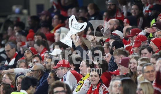2916925 LONDRES, INGLATERRA, 1 DE ABRIL: Torcedoras do Arsenal Women durante a partida entre Chelsea Women FC e Arsenal Women FC pela Liga dos Campeoes Feminina da UEFA, no Estadio Stamford Bridge, em Londres, Inglaterra, em 1º de abril. (Foto de Daniel Weir) (Daniel Weir/Sports Press Photo / SPP)