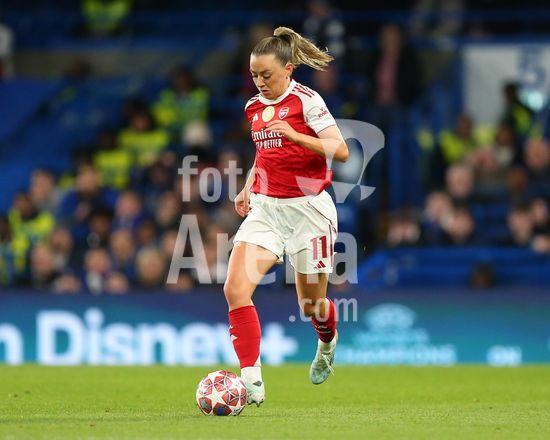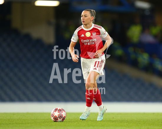 2916725 LONDRES, INGLATERRA - 1 DE ABRIL: Katie McCabe, do Arsenal, com a bola durante a partida de volta das quartas de final da Liga dos Campeoes Feminina da UEFA 2025/26 entre Chelsea e Arsenal, no Stamford Bridge, em 1 de abril de 2026, em Londres, Inglaterra. (Jay Patel/SPP)