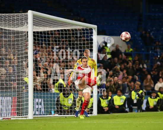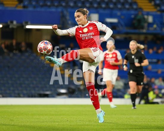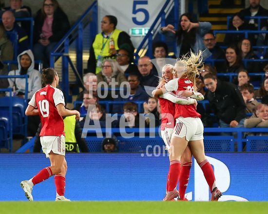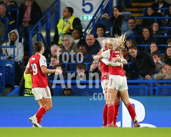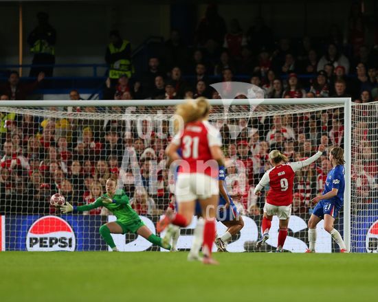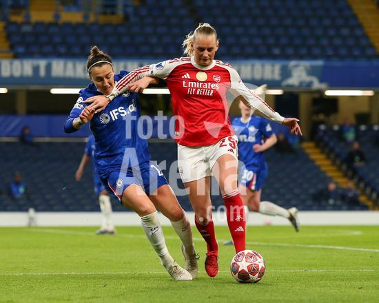 2916933 LONDRES, INGLATERRA, 1 DE ABRIL: Stina Blackstenius, do Arsenal Women, marca um gol que e anulado por impedimento durante a partida entre Chelsea Women FC e Arsenal Women FC pela Liga dos Campeoes Feminina da UEFA, no Estadio Stamford Bridge, em Londres, Inglaterra, em 1 de abril. (Foto de Daniel Weir) (Daniel Weir/Sports Press Photo / SPP)