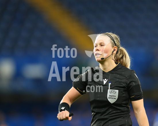 2916970 LONDRES, INGLATERRA - 1 DE ABRIL: A arbitra Frida Mia Klarlund Nielsen durante a partida de volta das quartas de final da Liga dos Campeoes Feminina da UEFA 2025/26 entre Chelsea e Arsenal no Stamford Bridge em 1 de abril de 2026 em Londres, Inglaterra. (Jay Patel/SPP)