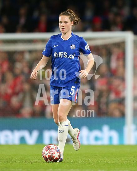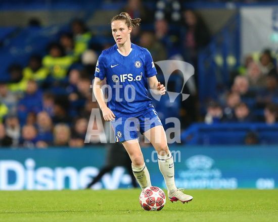 2916999 LONDRES, INGLATERRA - 1 DE ABRIL: Veerle Buurman, do Chelsea, com a bola durante a partida de volta das quartas de final da Liga dos Campeoes Feminina da UEFA 2025/26 entre Chelsea e Arsenal, no Stamford Bridge, em 1 de abril de 2026, em Londres, Inglaterra. (Jay Patel/SPP)