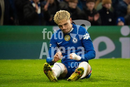 2871602 Alejandro Garnacho sentado apos sofrer uma falta em uma area importante para sua equipe durante a partida da Liga dos Campeoes da UEFA entre Chelsea e Pafos, no Stamford Bridge, em Londres, Reino Unido (Foto de Elliot Legg/Sports Press Photo). (Elliot Legg/Sports Press Photo / SPP)