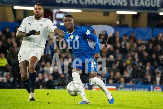 2871611 Wesley Fofana passa a bola durante a partida da Liga dos Campeoes da UEFA entre Chelsea e Pafos, no Stamford Bridge, em Londres, Reino Unido (Foto de Elliot Legg/Sports Press Photo). (Elliot Legg/Sports Press Photo / SPP)
