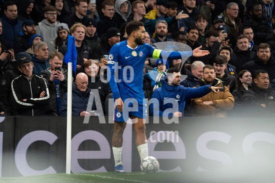 2871614 Reece James gesticulando para o arbitro durante a partida da Liga dos Campeoes da UEFA entre Chelsea e Pafos no Stamford Bridge em Londres, Reino Unido (Foto de Elliot Legg/Sports Press Photo) (Elliot Legg/Sports Press Photo / SPP)