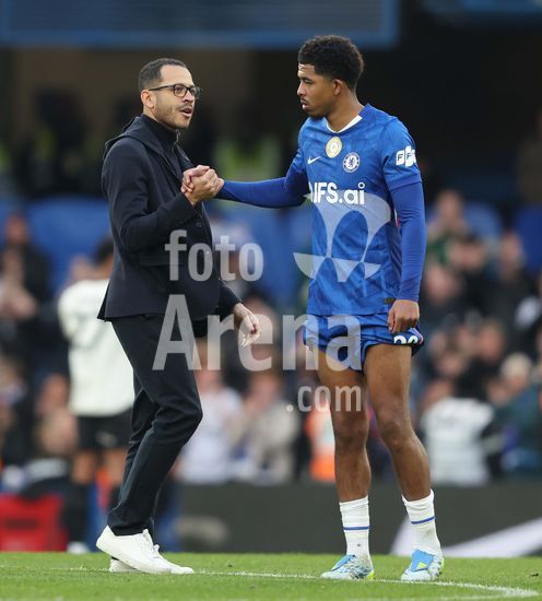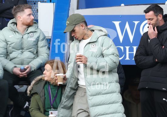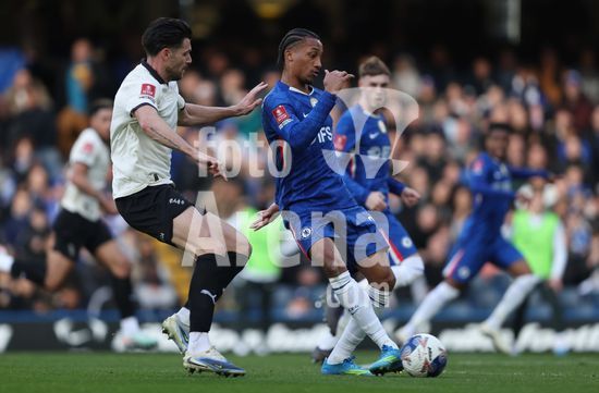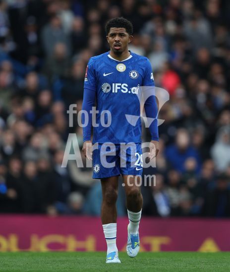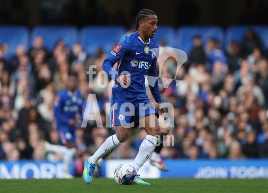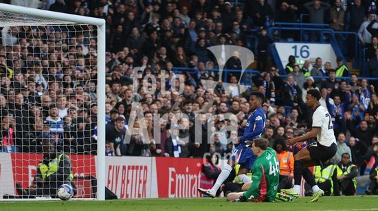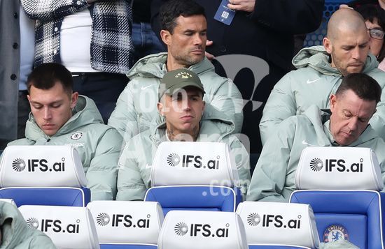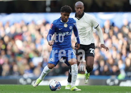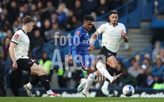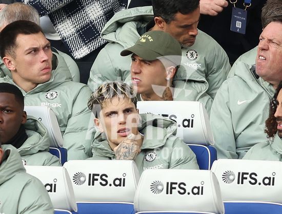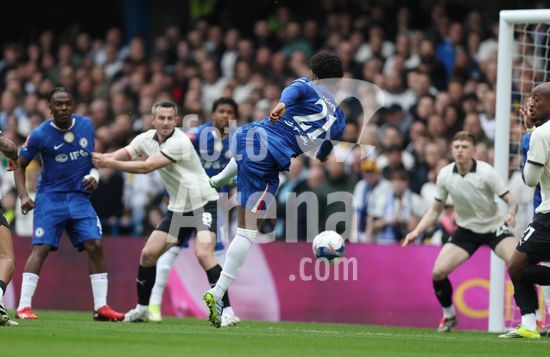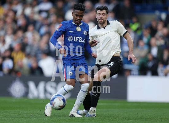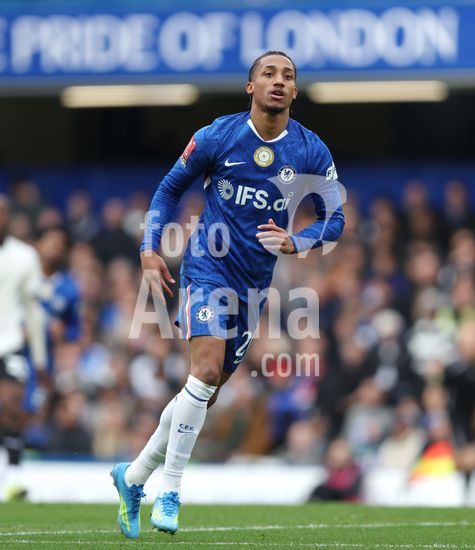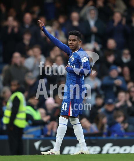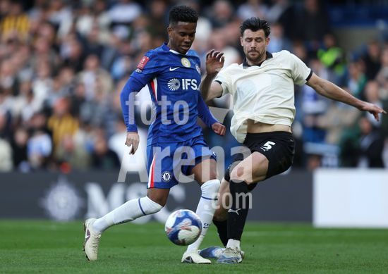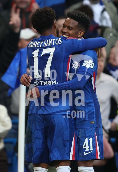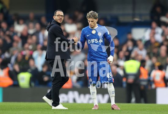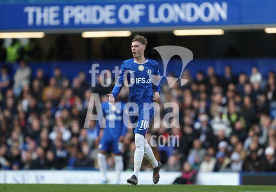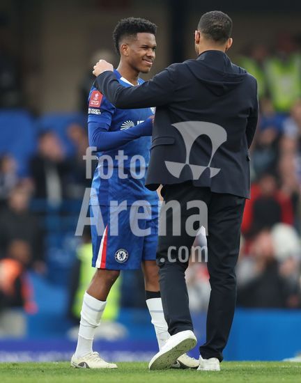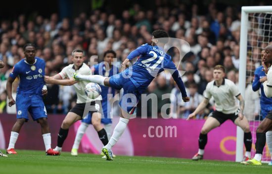 LONDRES, INGLATERRA, 4 DE ABRIL: GOL 7-0, Alejandro Garnacho, do Chelsea, comemora apos marcar um penalti e colocar o Chelsea em vantagem de 7-0 durante a partida entre Chelsea FC e Port Vale FC, valida pelas quartas de final da Copa da Inglaterra (Emirates FA Cup), no Estadio Stamford Bridge, em Londres, Inglaterra, em 4 de abril. (Daniel Weir/Sports Press Photo / SPP)