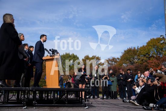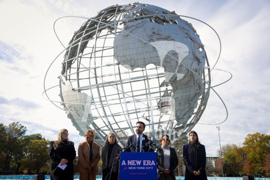 ny051125142811 Zohran Mamdani, the New York mayor-elect, speaks alongside members of his transition team during a news conference at the Unisphere at Flushing Meadows Corona Park in Queens, on Wednesday, Nov. 5, 2025. (Vincent Alban/The New York Times/Fotoarena)