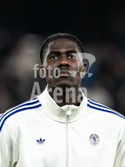 2857302 Oriane Jean-Francois (27 Chelsea) segura a bola durante a partida entre Chelsea e Roma pela fase de grupos da Liga dos Campeoes Feminina da UEFA, em Stamford Bridge, Londres, Inglaterra, na quarta-feira, 10 de dezembro de 2025. (Claire Jeffrey / SPP)