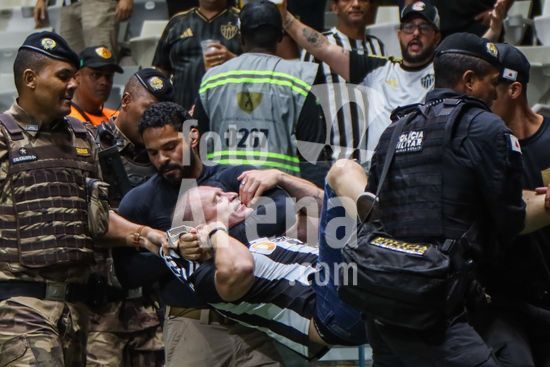 2824878 Torcedor preso pela Policia na partida entre Atlético Mineiro x Cruzeiro pela 28ª rodada do Campeonato Brasileiro 2025, na Arena MRV em Belo Horizonte, nesta noite de quarta (15).