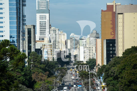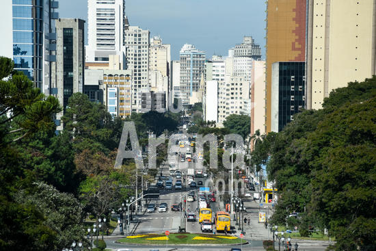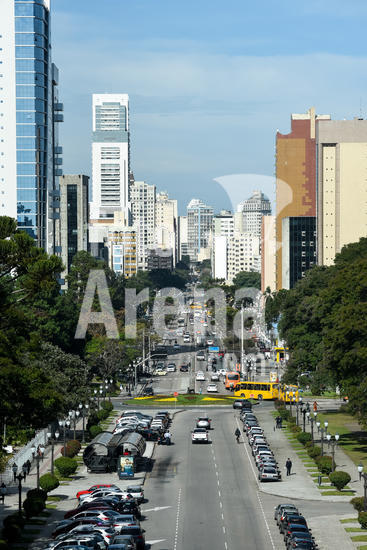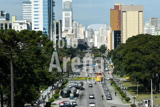 1549026 Vista da cidade de Curitiba, com a rua Cândido de Abreu que liga o Centro Cívico - onde está a sede do governo estadual - com o centro da cidade.