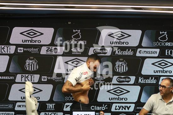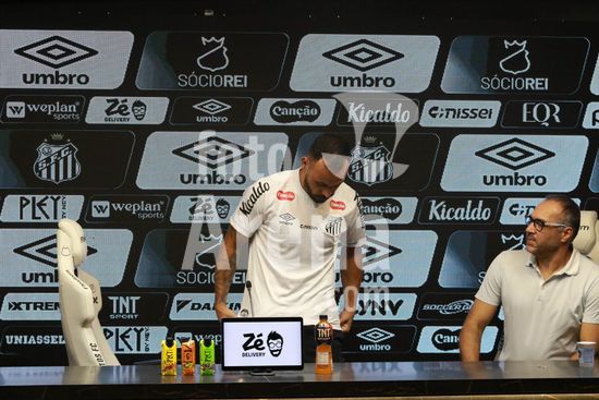 2883335 O Santos FC realiza coletiva de imprensa para apresentação oficial do atacante Moisés,, na Vila Belmiro em Santos, SP.